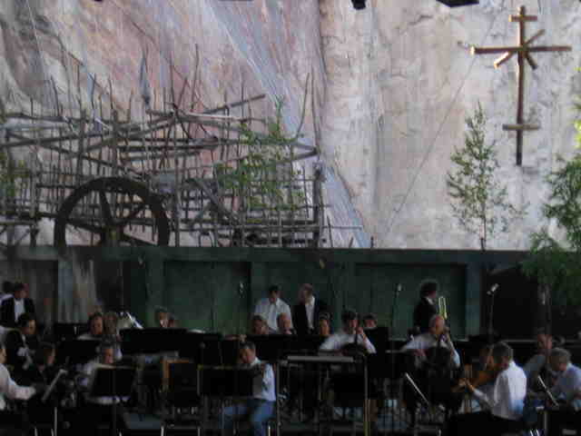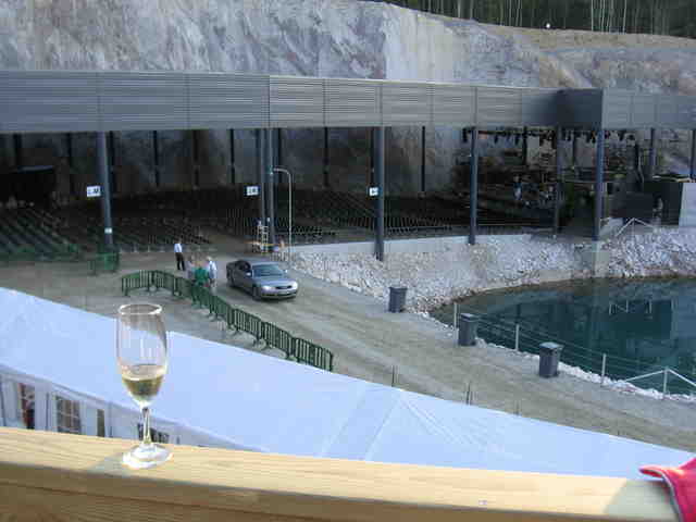After another bout of Finnish dining at the hotel, I joined the orchestra (well, only half of it) on a bus to the Opera Cava festival site. The site is an old quarry: