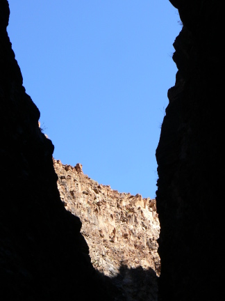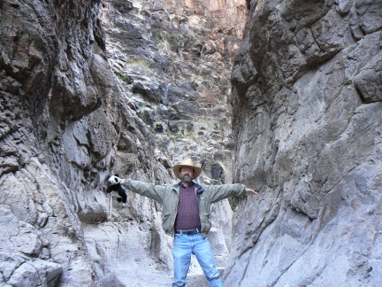 There is a main road that roughly follows along the Rio Grande between Terlingua and Presidio, Texas, that provides access to the southern parts of the park. Only very roughly developed, there are just a few trails off the road. One relatively short trail leads to Close Canyon (and what do they call it when they disallow access?). I guess this qualifies as a slot canyon, as it is relatively narrow (down to about 8 feet wide at its narrowest that I could tell), and probably 2-300 feet high. It was quite cool in the canyon, despite it being a warm day. Amazingly, there was some life in the canyon...